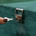 Keep your precious jewellery organised in this elegant 3-layer jewellery box.Our jewelry box are made of high-quality fabrics, and it has safety lock to protect your jewelry from dust particles and chemical agents.The green colour gives it a classic and sophisticated look that suits any dressing table or vanity.