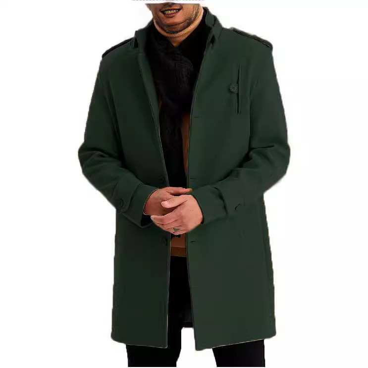 Men’s Fashion Single-Breasted Mid-Length Epaulette Jacket