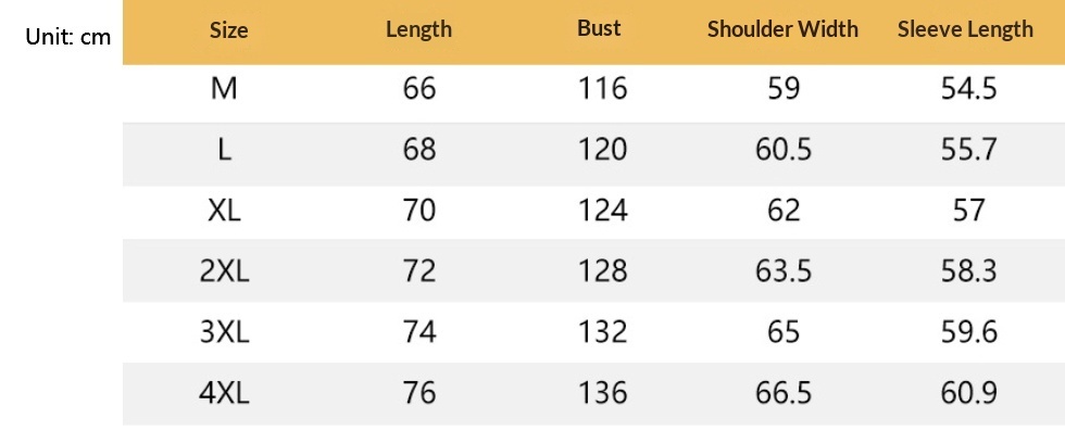 Sizes: M, L, XL, 2XL, 3XL, 4XL