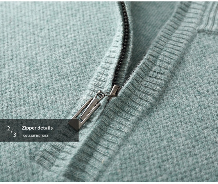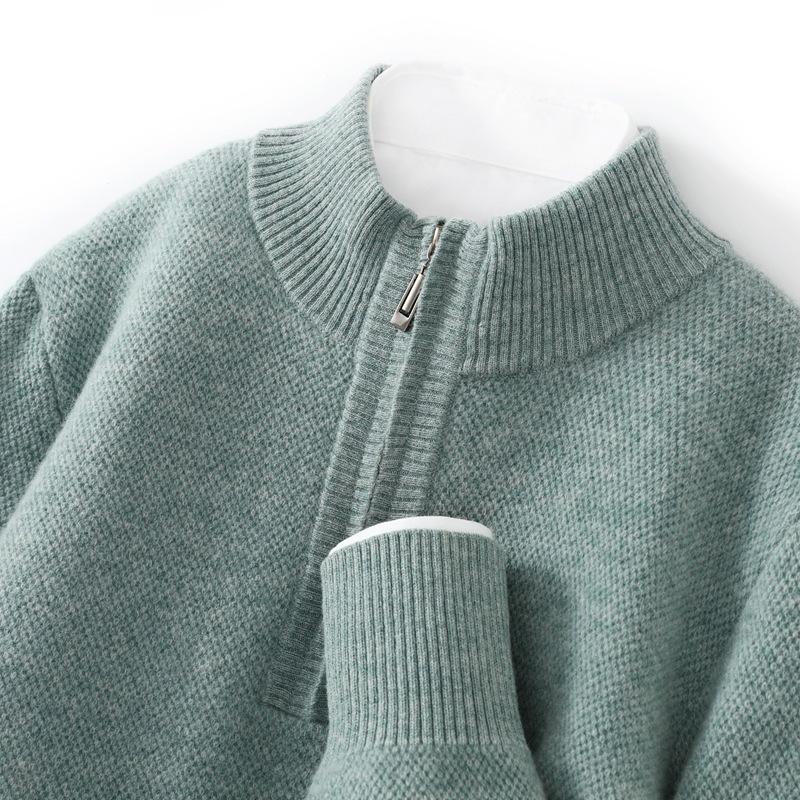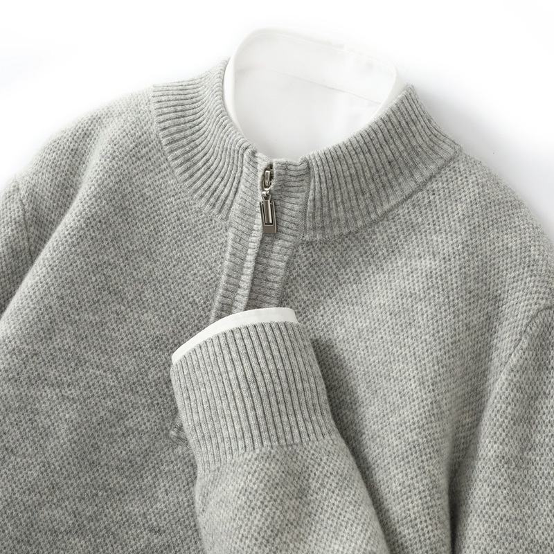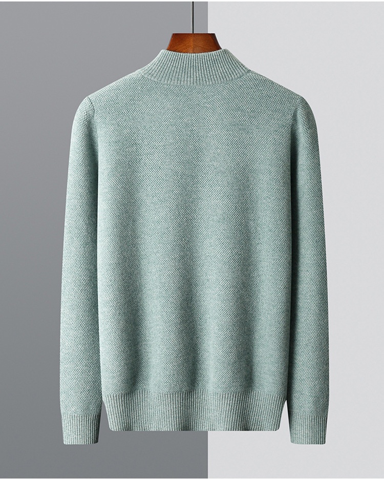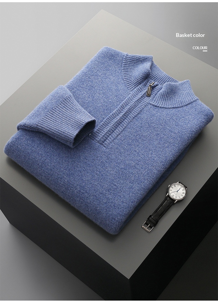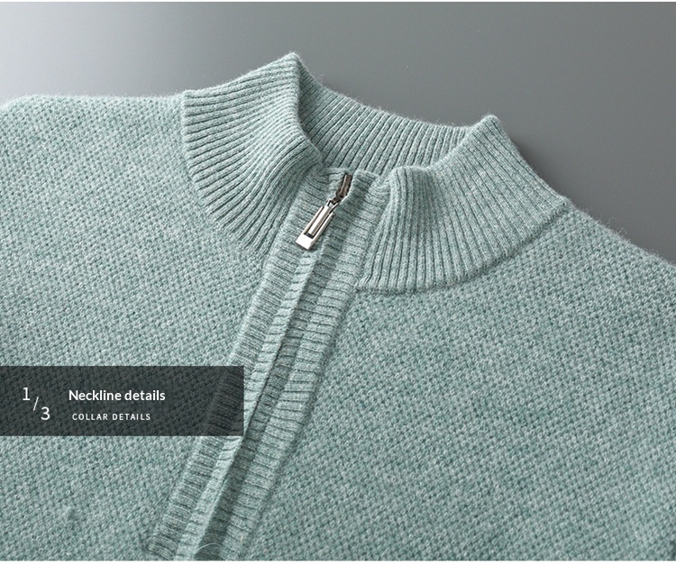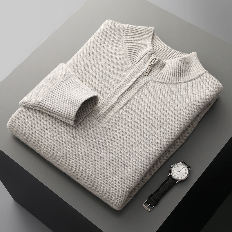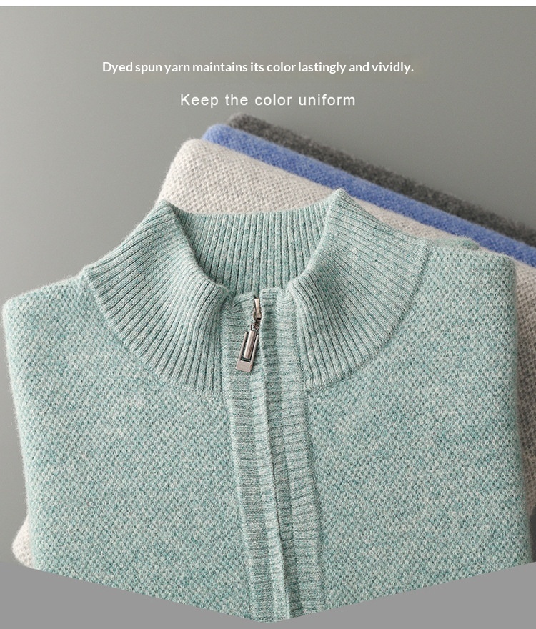 Men’s Mid-length Zip-up Honeycomb-knit Thickened Sweater