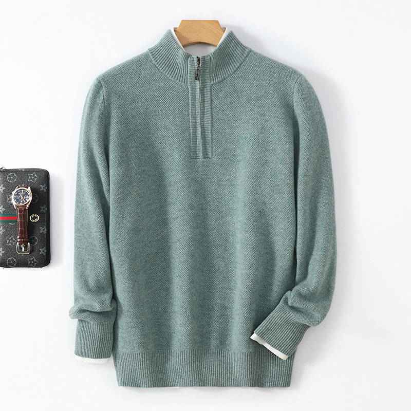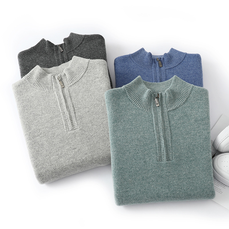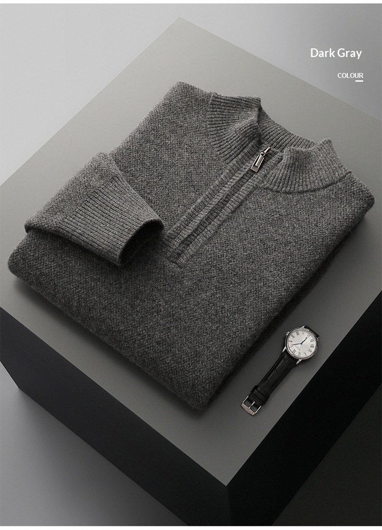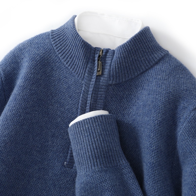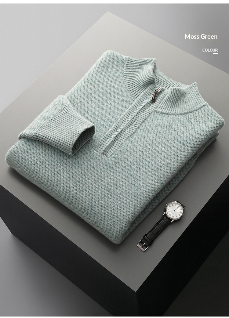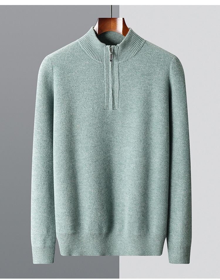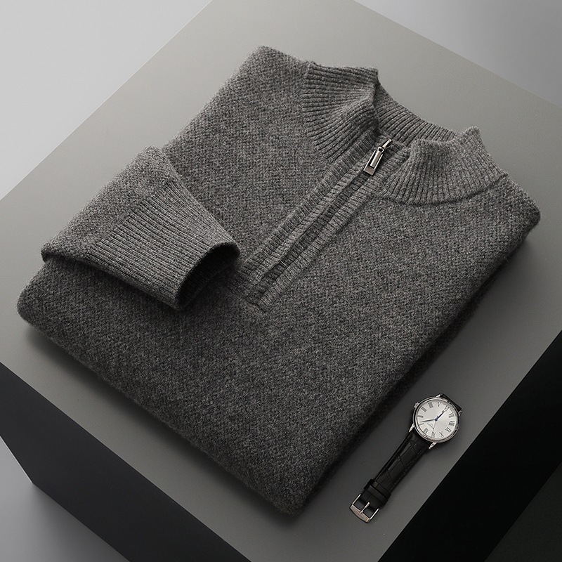 Men’s Mid-length Zip-up Honeycomb-knit Thickened Sweater