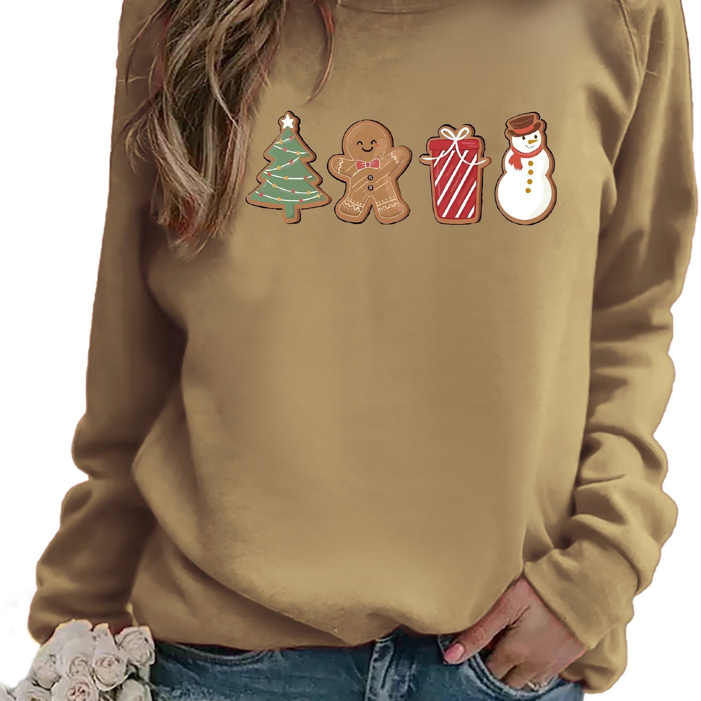 Snowman And Gingerbread Man Printed Sweater Comfortable And Casual