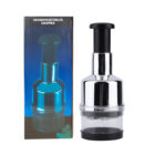 4. Press down the button with your palm of your hand, the more you hit the finer the food are minced.